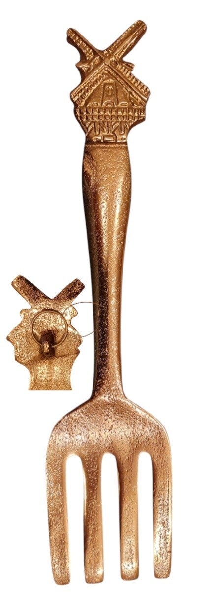 Deze decoratieve vork heeft aan de achterzijde een ophang ring.