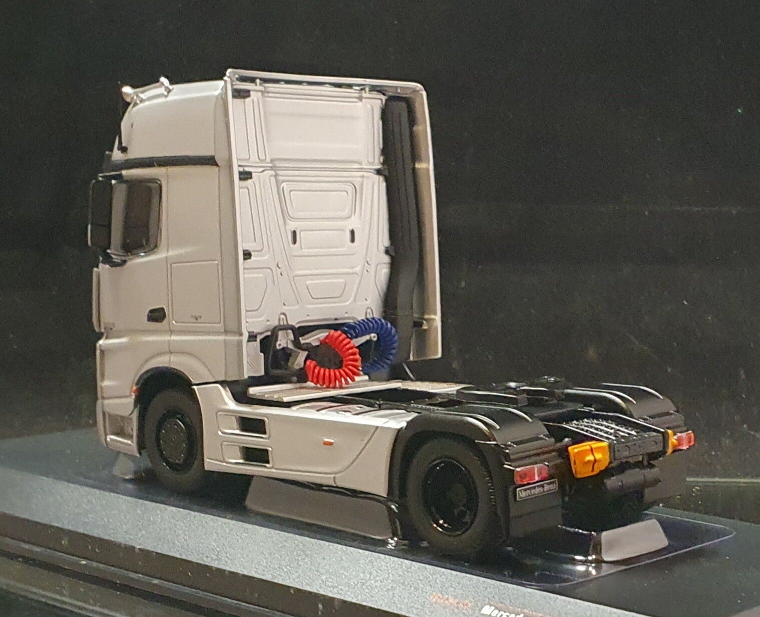 Omschrijving: Mercedes Benz Actros MP 4 in de schaal 1:43. Deze IXO modellen zijn zogenoemde "statische" modellen dus echt voor de verzamelaar..