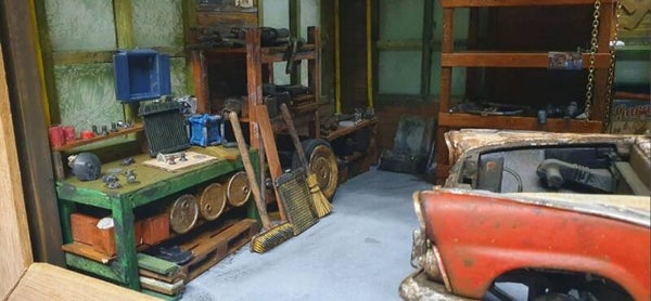 Garage diorama in de schaal 1:18.
