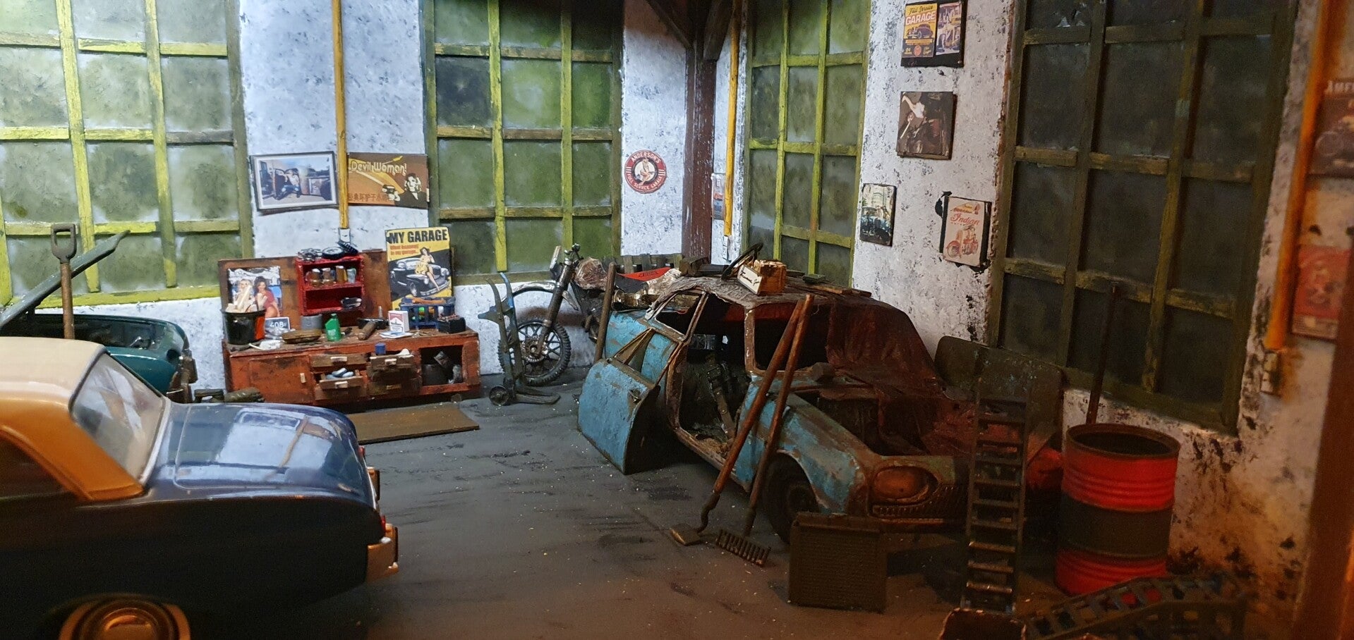 Garage diorama in de schaal 1:18.
